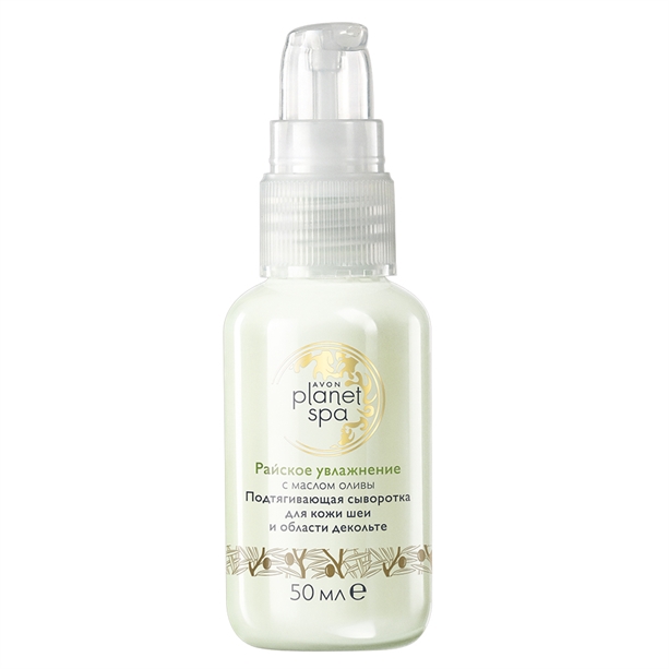 Avon Підтягуюча сироватка для шкіри шиї та зони декольте з олією оливи «Райське зволоження»