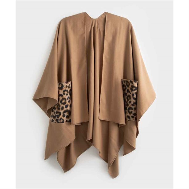 Avon Leopard-Print Pocket Camel Cape