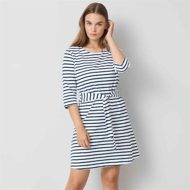 Avon Navy Cotton Striped Belted Dress – Small 8-10