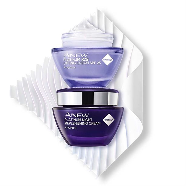 Try your perfect Day-To-Night Skincare Set today for visible results in just 2 days. The Anew Platinum Day-To-Night Skincare Set includes a full-size jar of Platinum Day and Night Cream, featuring Protinol™ Technology for a dual collagen boost and lifted skin.