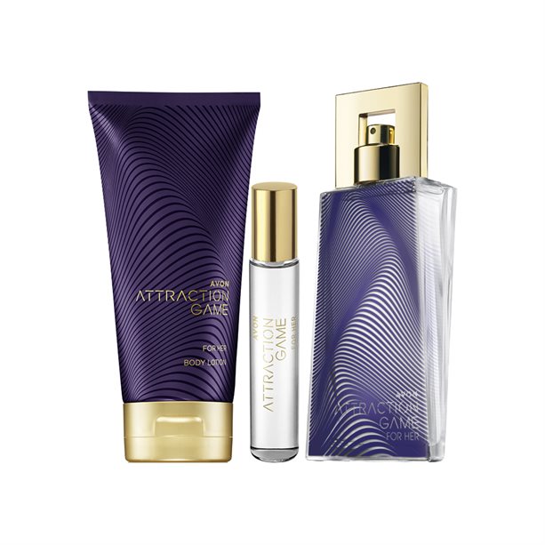 Attraction is a game and it’s time to play, so make your move with the woody and amber perfume of Attraction Game for Her Set. The fragrance that’s designed to stimulate your sensory neurones to unlock undeniable pleasure, with spicy pink pepper, rich dark chocolate and luxurious velvet woods.