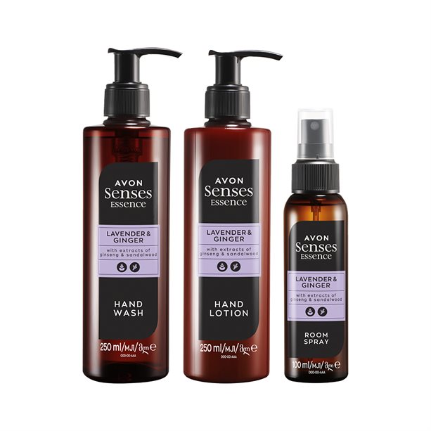 Impress your guests with this stylish bathroom collection. Our Senses Essence Lavender & Ginger Bathroom Trio combines natural extracts of ginseng and sandalwood, and luxurious fragrance notes of lavender and ginger.