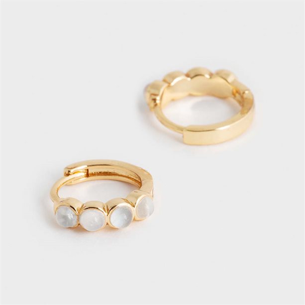 Go from desk to dinner with our huggie style Astra Hoop Earrings. Featuring gorgeous moonstone detailing, they’re the perfect pair for full-on glam or simple styling.