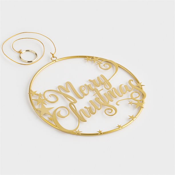 Beautiful gold-coloured hanging decoration.’Merry Christmas’ wording.