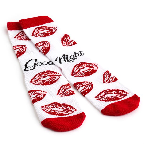 One size socks.All-over lip design.Matching Goodnight PJs & Eye Mask available.