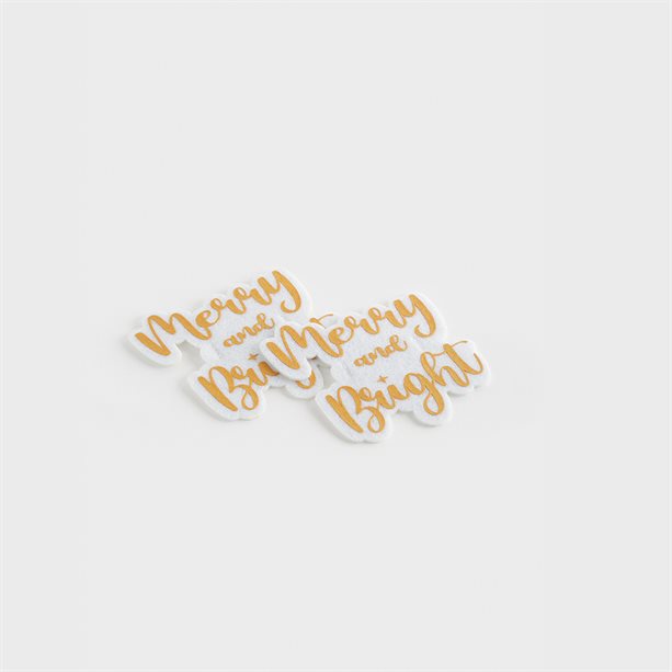 Pack of 2 cutlery holders. ‘Merry & Bright’ glitter slogan. Matching table runner and placemats available.#