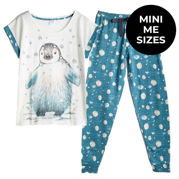 Snuggle up with your little one for a cosy night in wearing matching penguin pyjamas. With a penguin sketch design, snowball print bottoms and gorgeous glitter detail, our 100% cotton Ladies’ Penguin PJs are perfect for wintry nights on the sofa together.