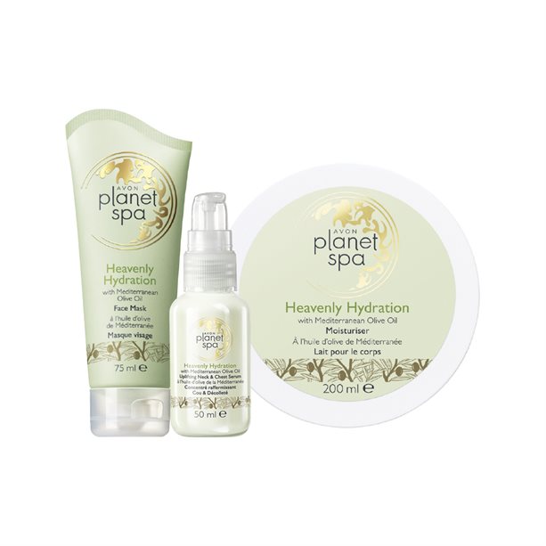 Relax and moisturise your skin with the nourishing benefits of Mediterranean olive oil. Our Heavenly Hydration Set includes a matching body moisturiser, face mask and next & chest serum.