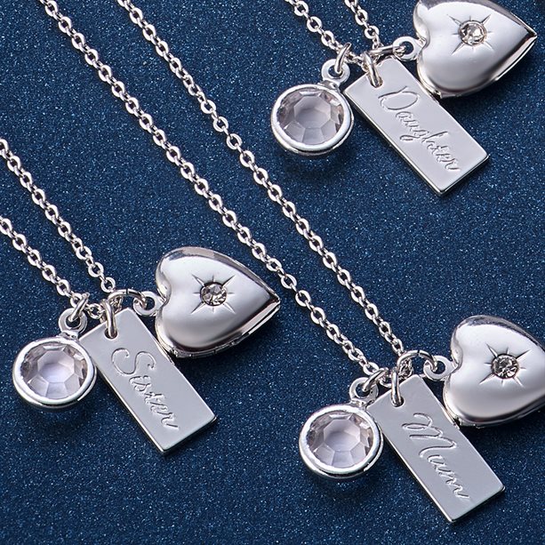 Pretty 3-charm necklace.Silver-plated.Comes with a daughter, sister or mum script charm.
