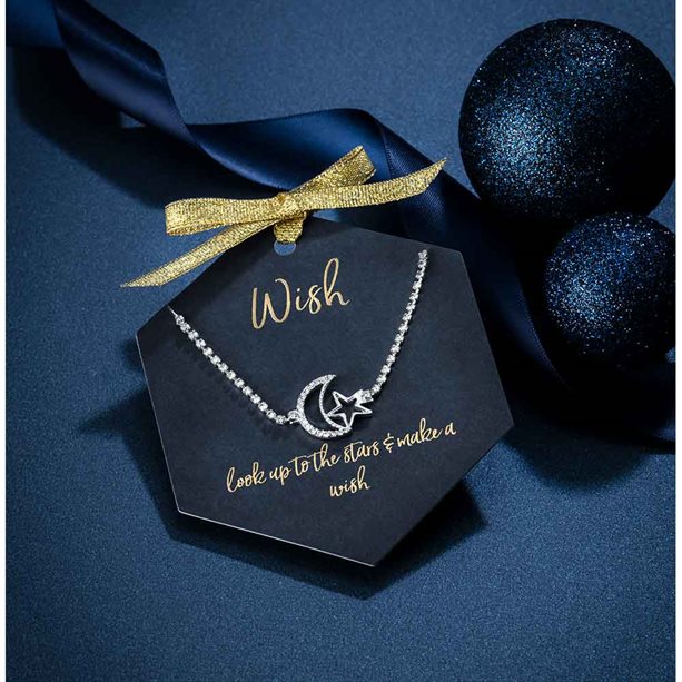 Pretty silver-plated bracelet.Sparkling moon and star symbol.Comes on a gift card.