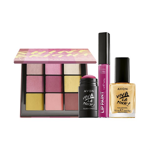 Express your creativity with this Viva La Pink! Kit. Featuring all your favourite pinks and a few pops of contrast to really get the colour party started, so you can wear your favourite shades in whatever way feels powerful to you. You’ll get a limited edition eyeshadow palette with 9 highly-pigmented shades, a super-creamy dewy blush, a high-impact hydrating matte lip paint and a playful nail colour in a rich pearlised finish.