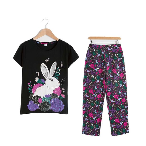 Follow the white rabbit to a cosy night in and indulge in snug luxury! The brightly coloured bottoms and cute top make these the perfect pair of PJs. And we’ve got a min pair so you can match with your little one.